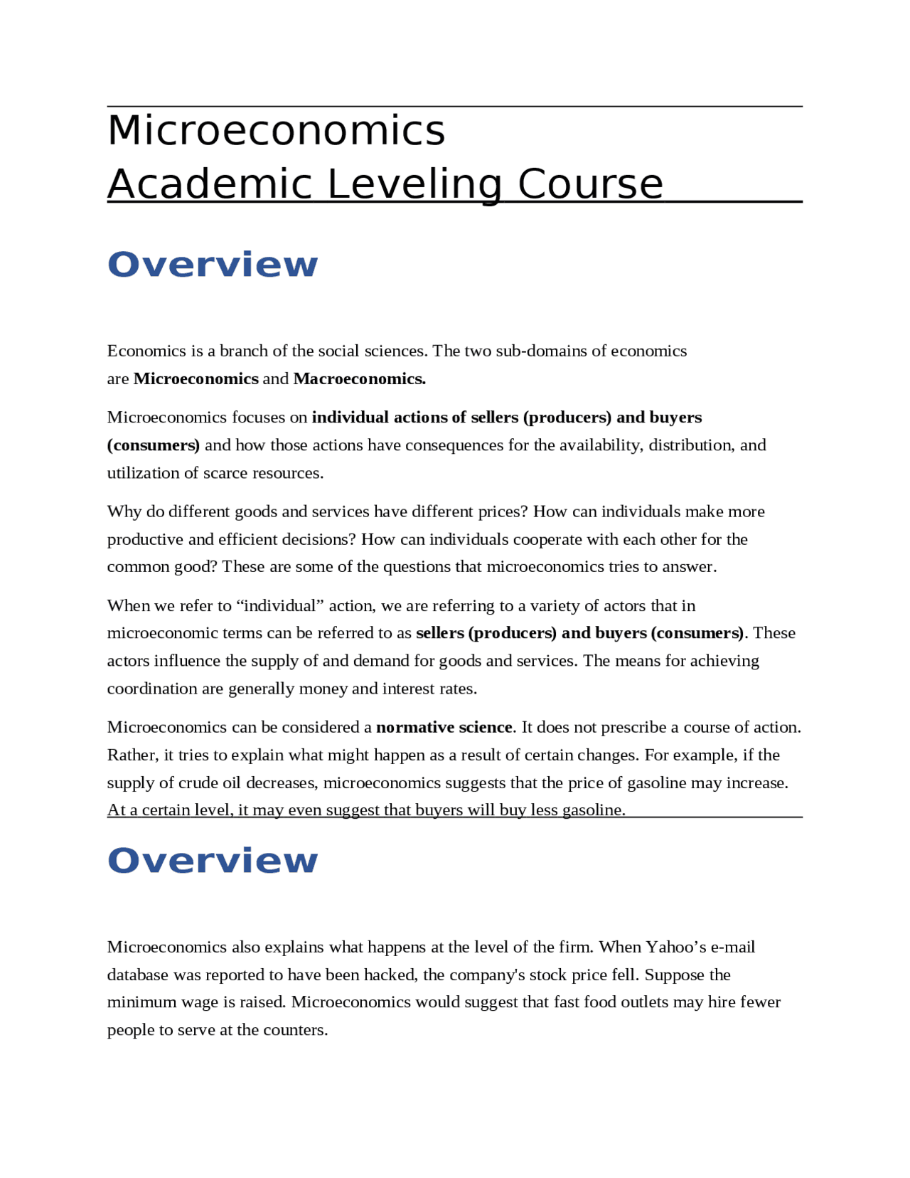 Microeconomics And Macroeconomics