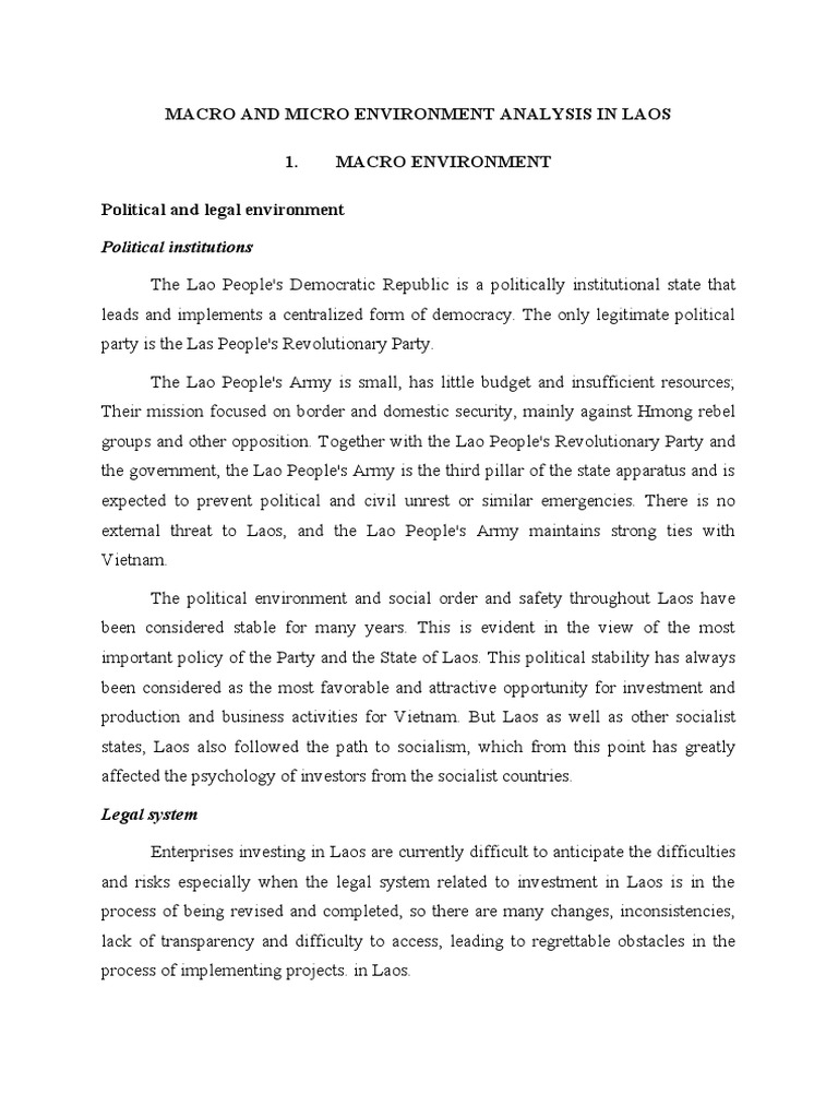 Macro and Micro Environment Analysis in Laos | PDF | Laos | Vietnam