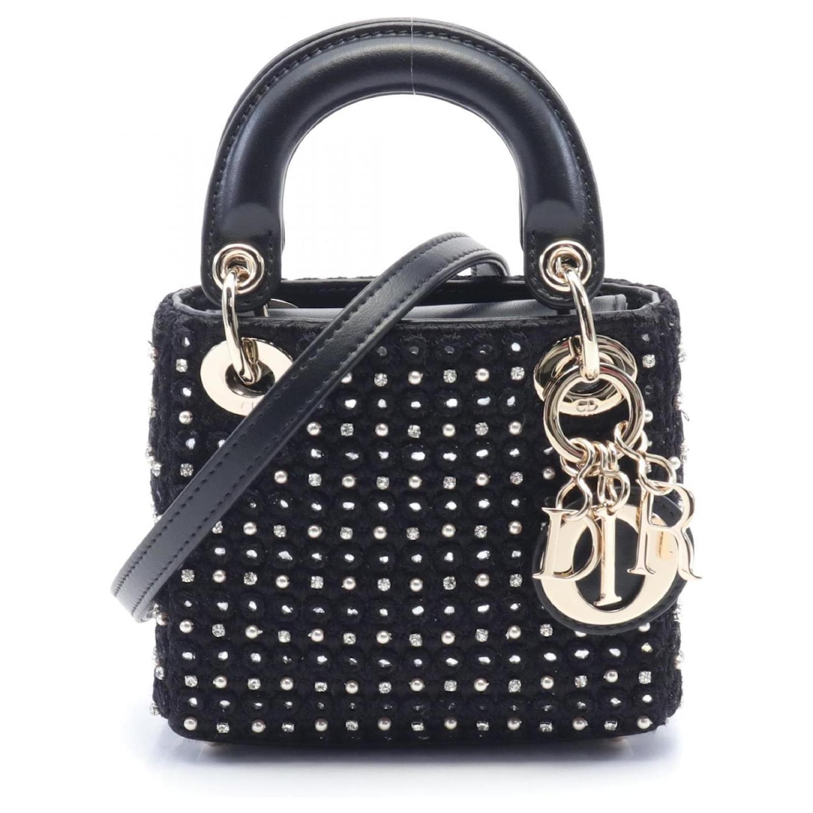 Christian Dior Lady Micro Handbag Black Leather Cloth ref.1525437 ...