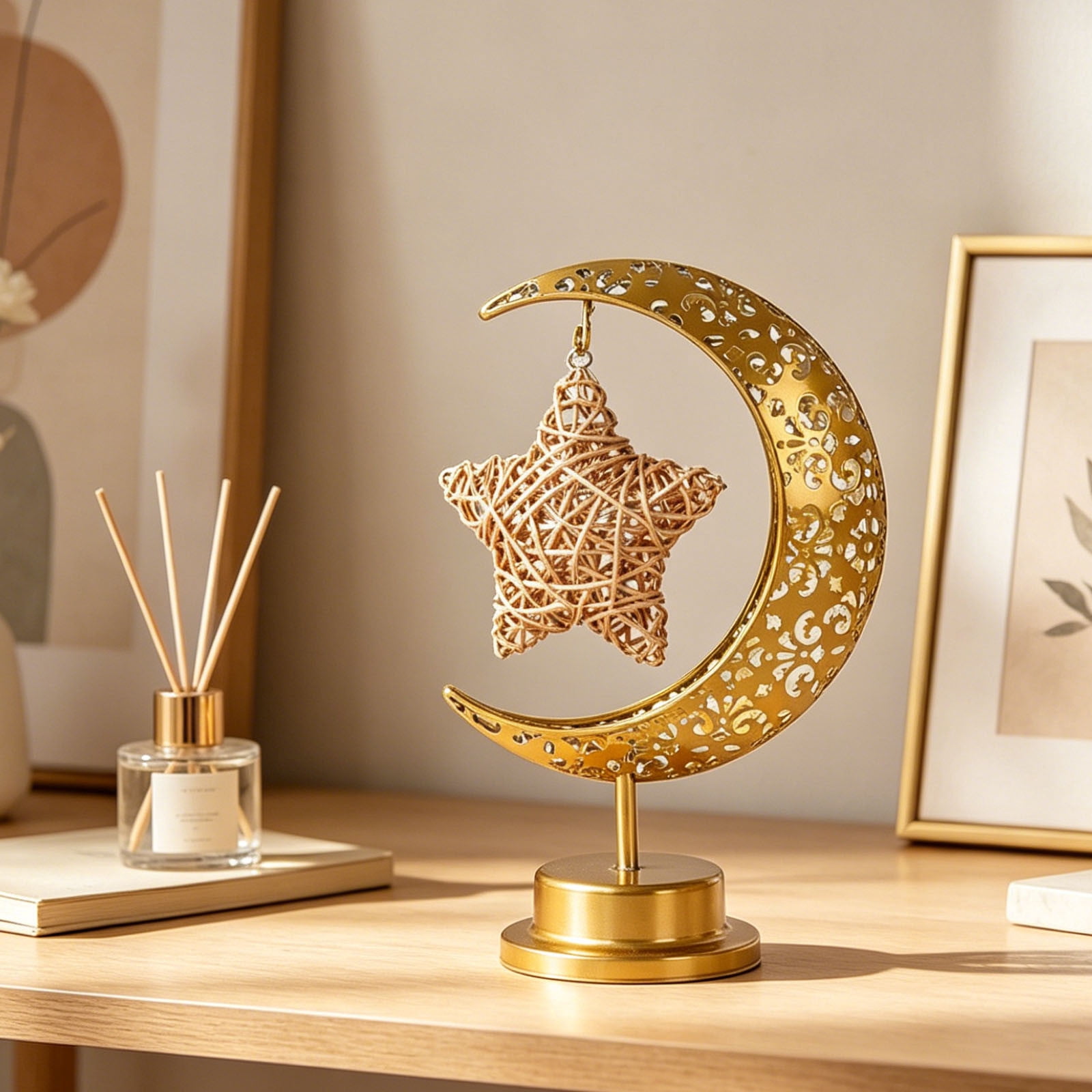 AHGQT LED Star Moon Night Light, Bedroom Bedside Decorative Lamp – Warm ...