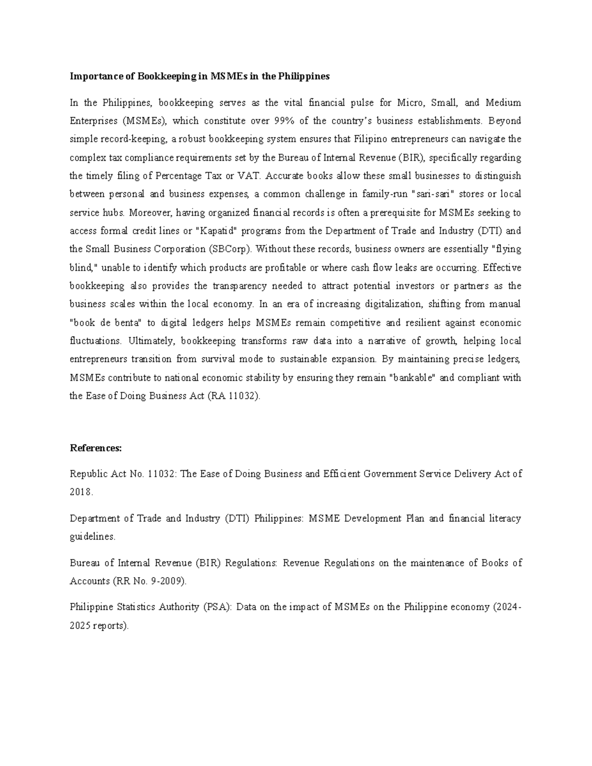 The Role of Bookkeeping in MSMEs: A Philippine Perspective - Studocu