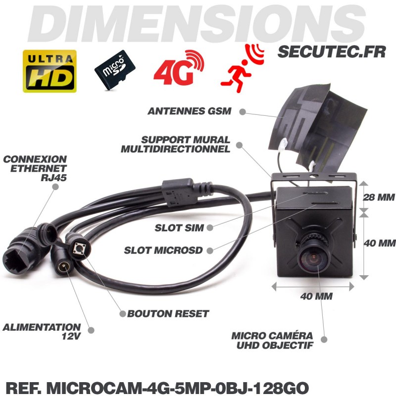 Micro caméra IP 4G à intégrer accès à distance via iPhone Android ...