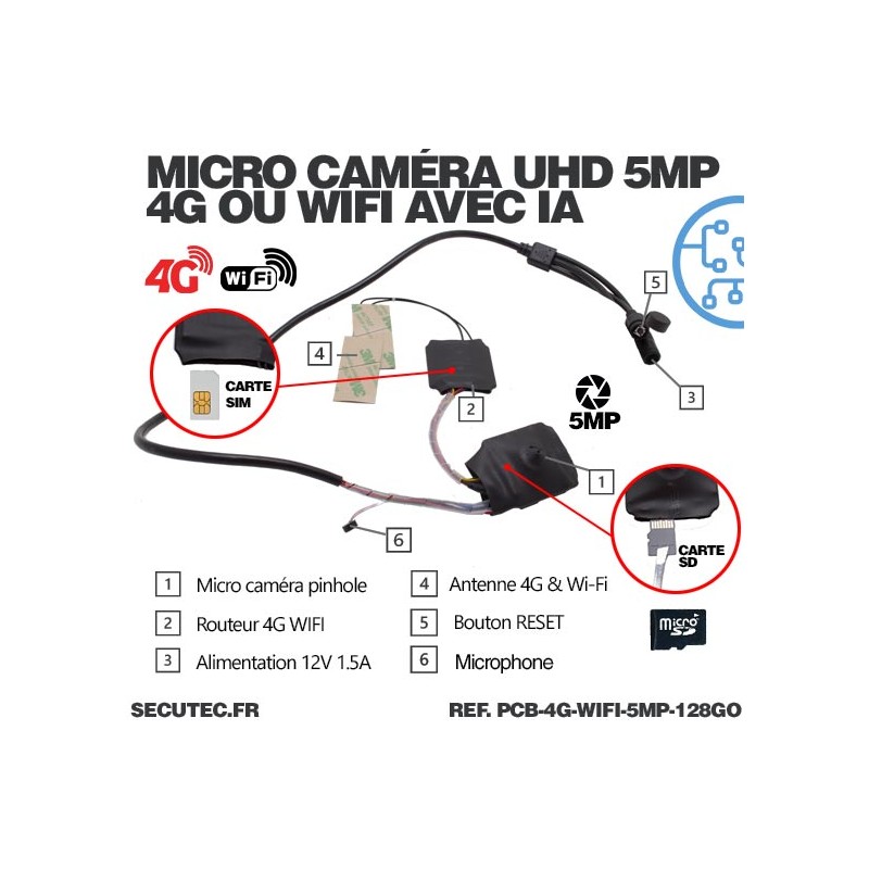 Micro caméra 4G ou WiFi à intégrer accès à distance via iPhone Android ...