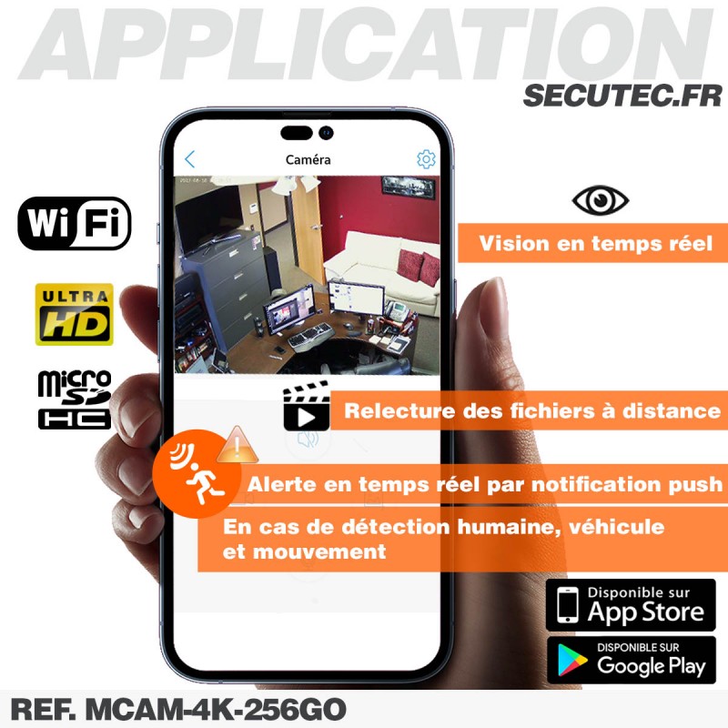 Micro caméra pinhole WiFi à intégrer enregistrement Ultra HD 4K alerte ...