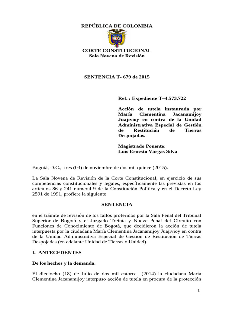 T-679 de 2015 Micro Focalización (1) | PDF | Sentencia (ley) | Estado ...