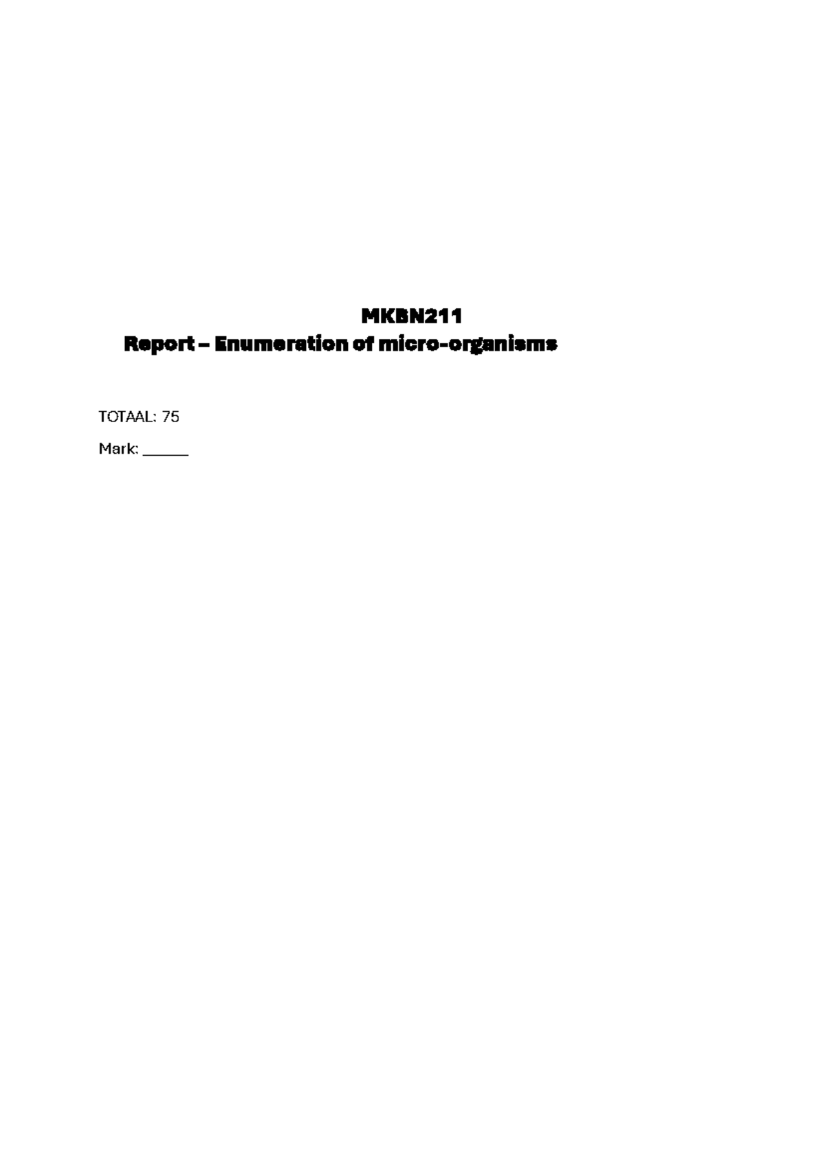 MKBN211 Enumeration Report: Microbial Growth Analysis and Methods - Studocu