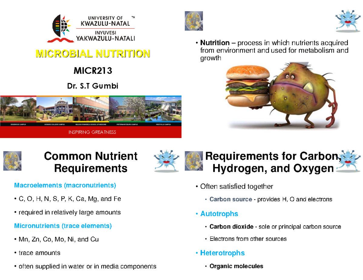 MICR213 Microbial Nutrition: Lecture Notes on Nutrient Requirements ...