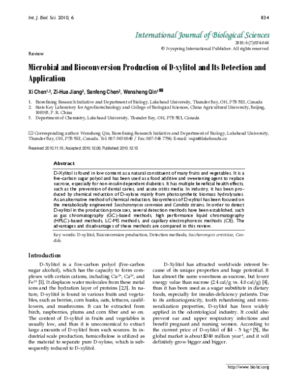 (PDF) Microbial and Bioconversion Production of D-xylitol and Its ...