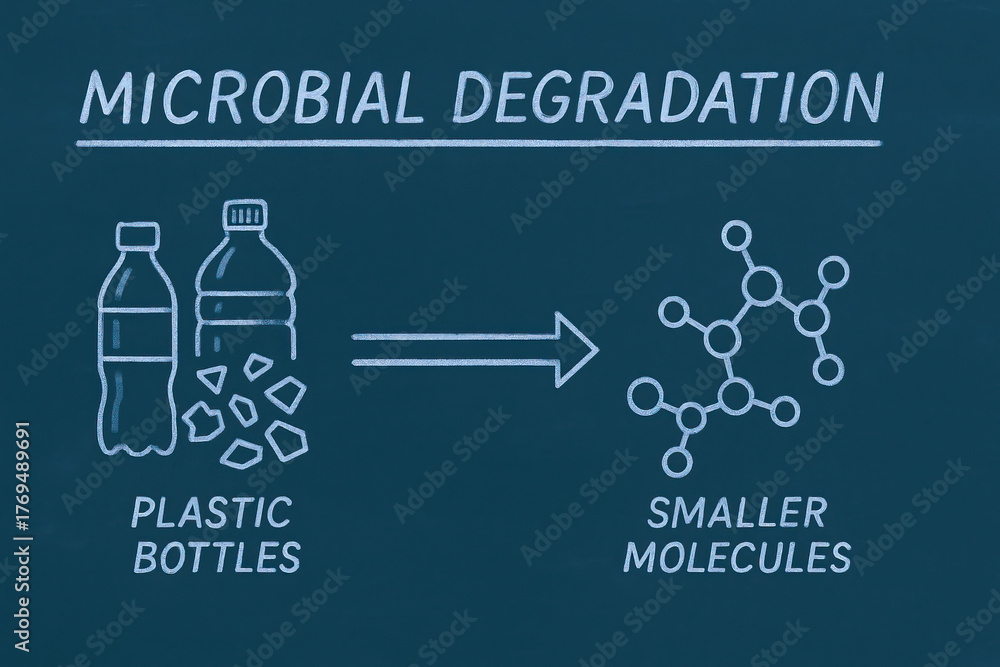 Stock-Foto „Microbial degradation plastic bottle fragment breakdown ...