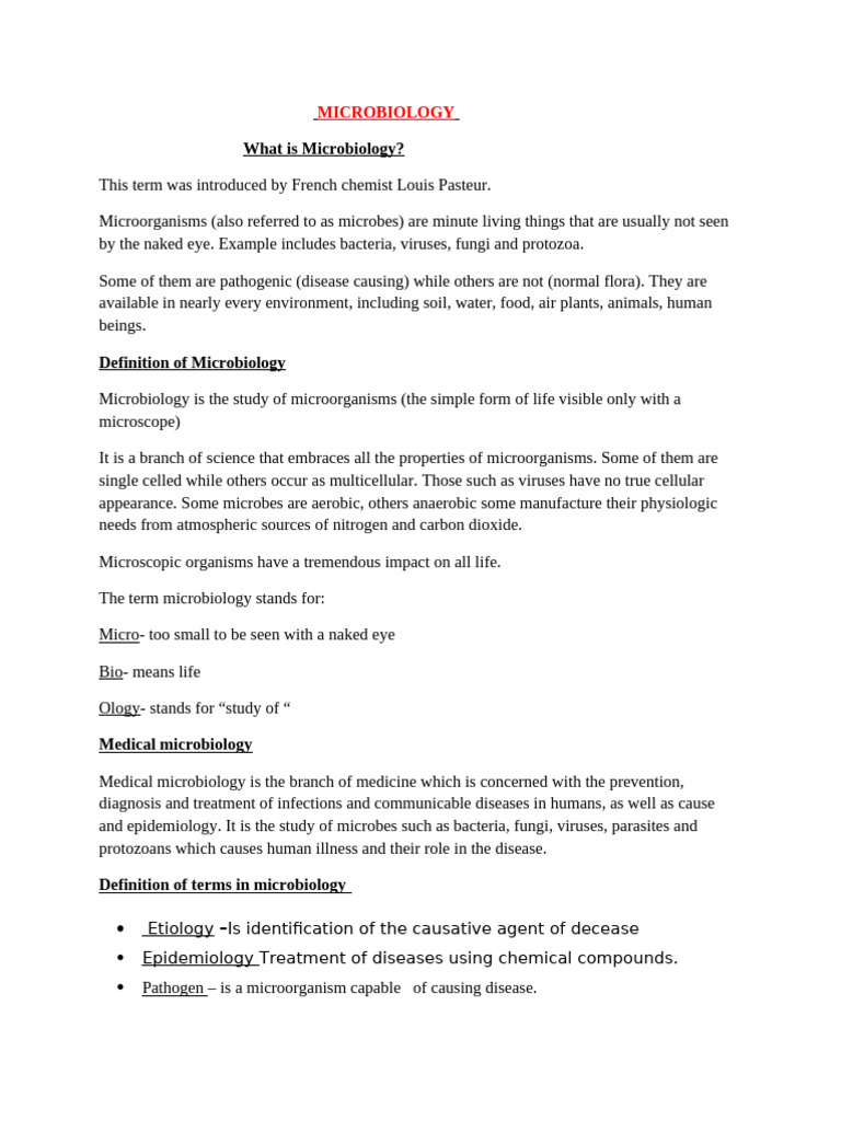 Introduction to microbiology notes W1 - Introduction to microbiology ...