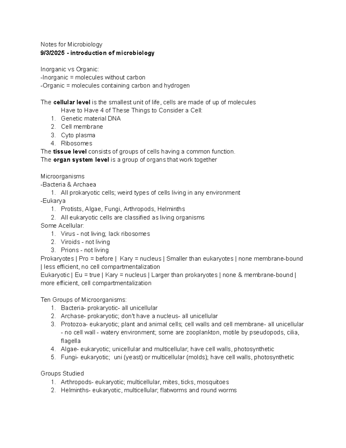 Lecture 1 Notes (Introduction to Microbiology Part 2) - Microbiology ...