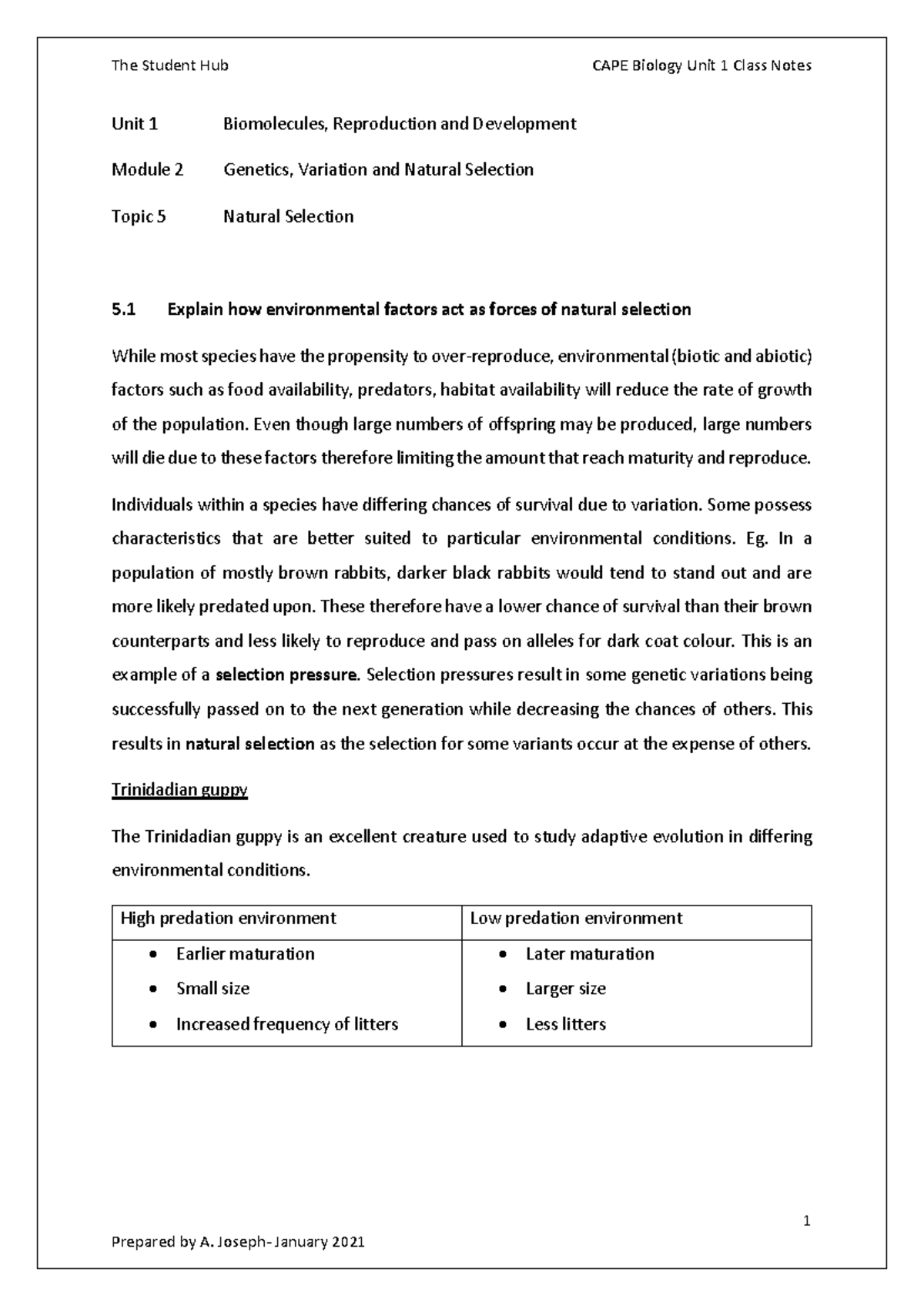 CAPE Biology Unit 1 Class Notes: Natural Selection & Speciation ...