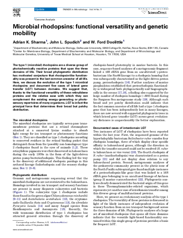 (PDF) Microbial rhodopsins: functional versatility and genetic mobility