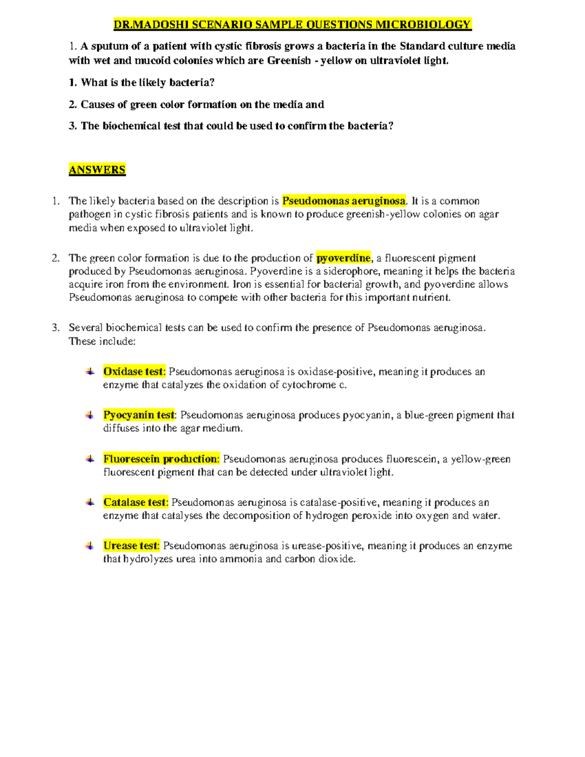 Pathogenic Microbiology - Case Studies Copied Questions and Answers ...