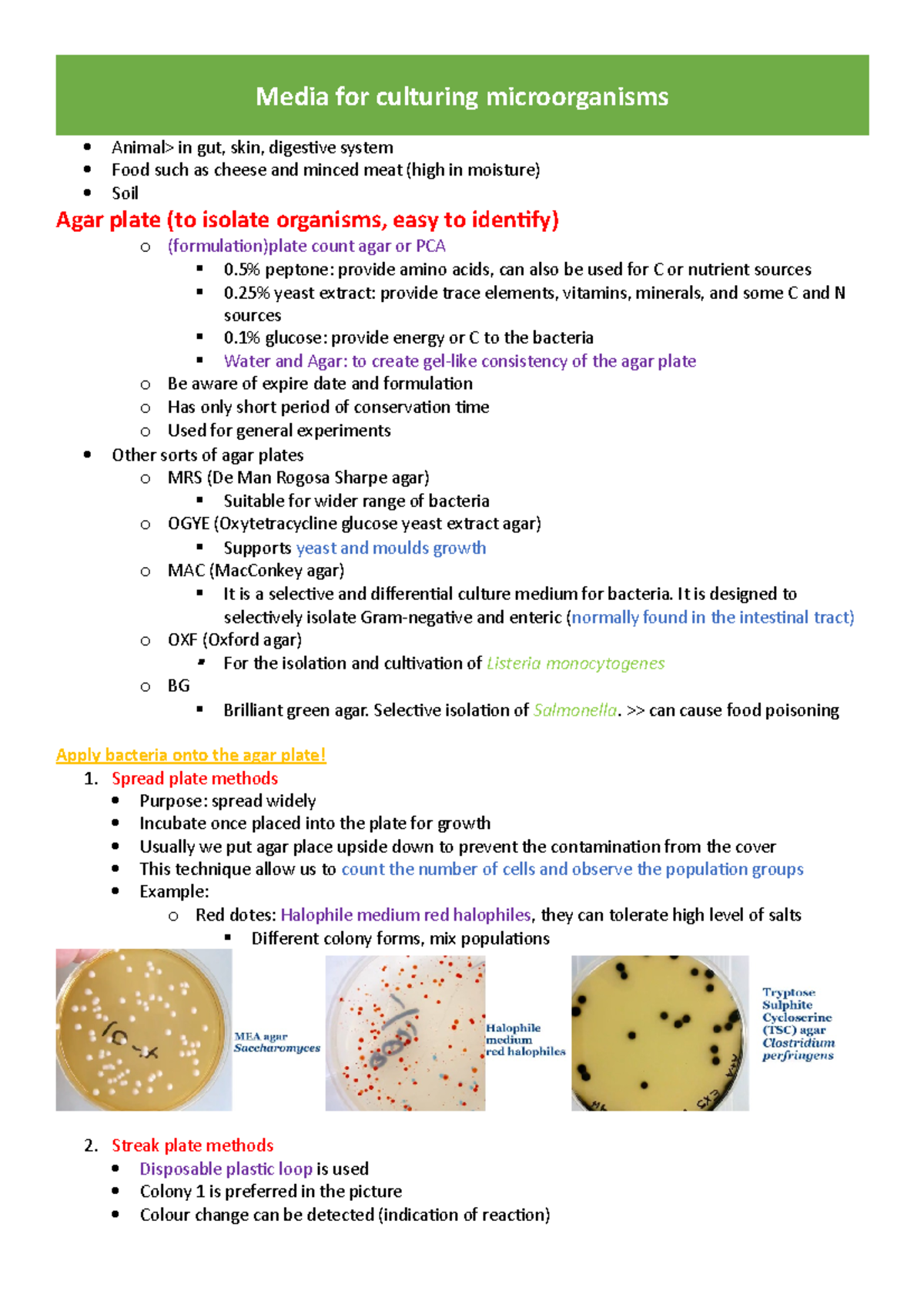 Prac note for Food Microbio - Media for culturing microorganisms Animal ...