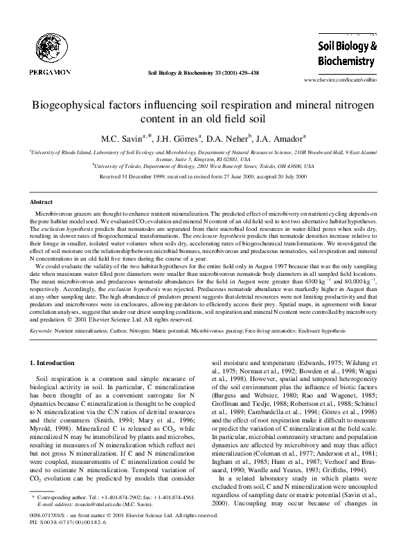 (PDF) Biogeophysical factors influencing soil respiration and mineral ...
