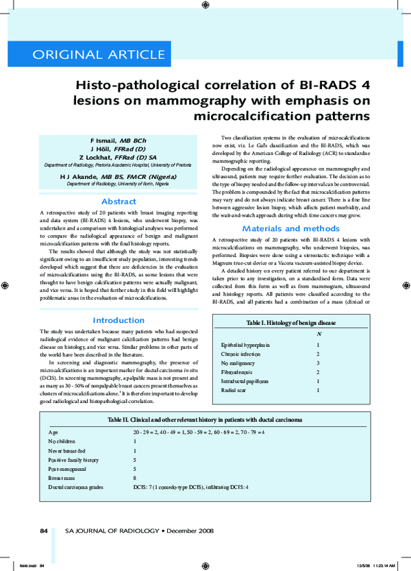 (PDF) Histo-pathological correlation of BI-RADS 4 lesions on ...
