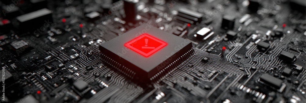 Burnt Microchip With Blinking Red Light and Warning Mark Indicating ...