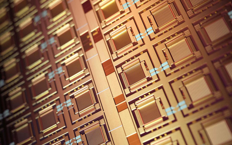 Closeup macro of silicon chip wafers, US CHINA microchip war ...