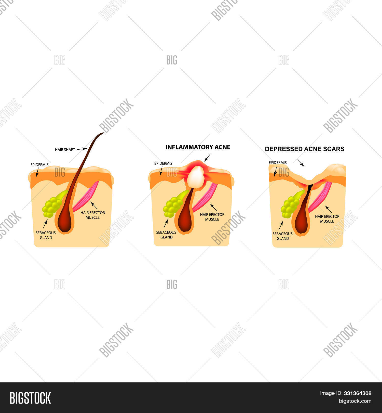Open Comedones, Inflamed Acne, Cysts. Inflamed Pimples. The Structure ...