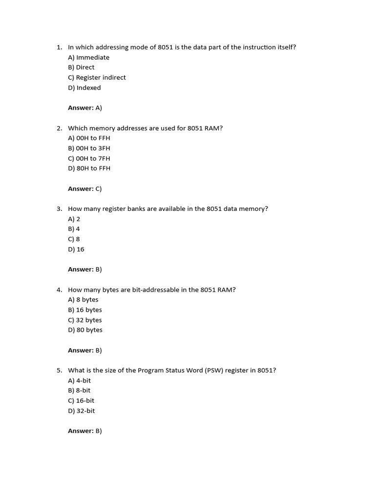 MCQ Questions The 8051 Microcontroller - General Questions with Answers ...