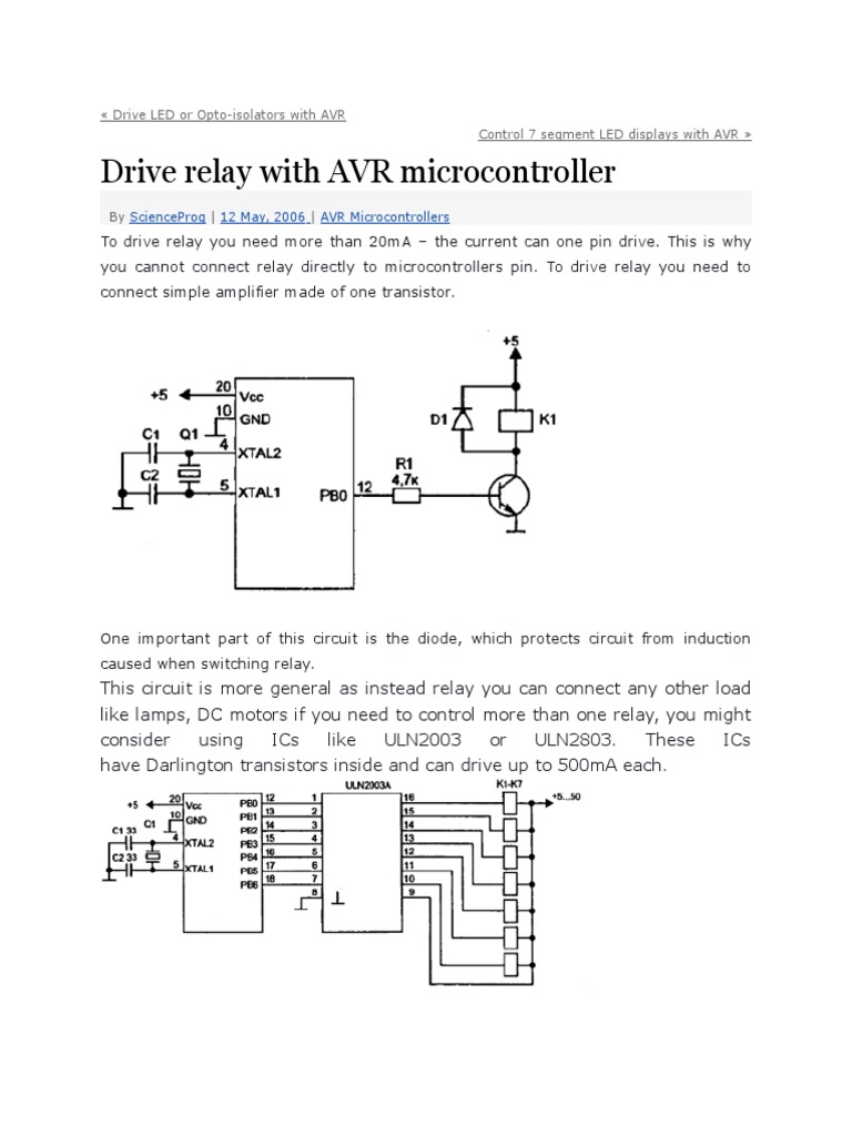 AVR Microcontroller Relay Driver Circuit | PDF