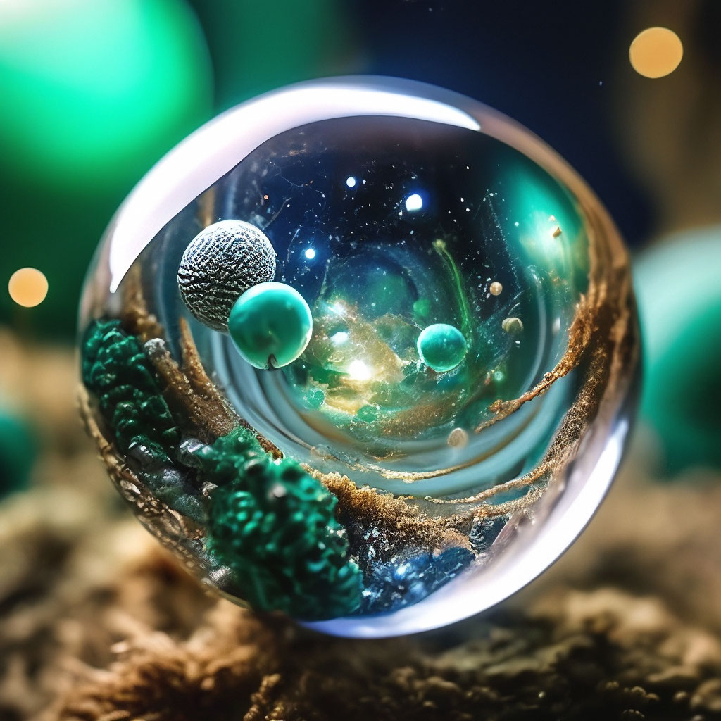 "Panoramic microcosm in the sphere, the world inside, nebulous galaxies ...