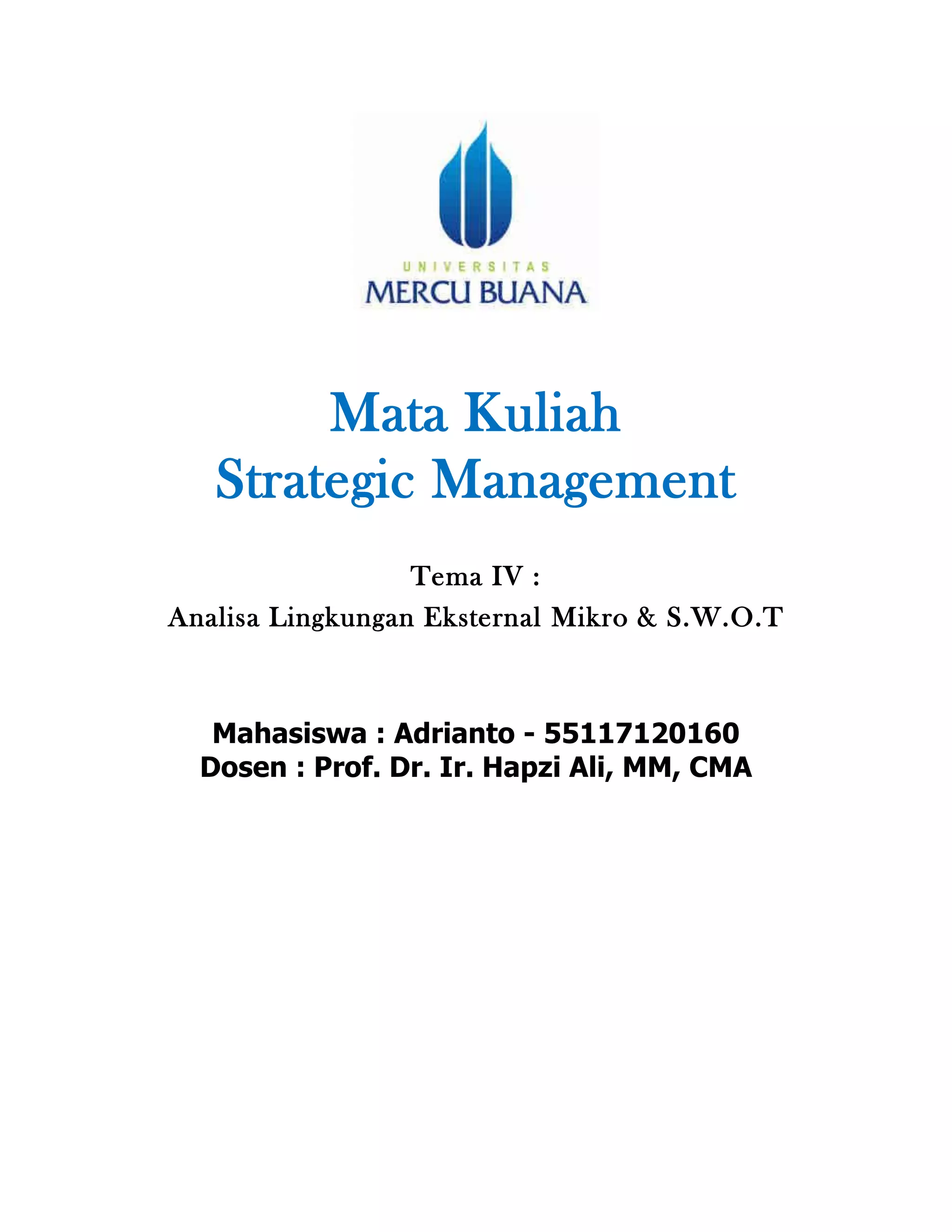 4, sm, adrianto, hapzi ali, external micro environment analysis & swot ...