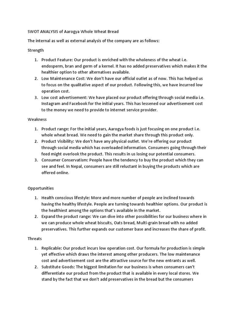 SWOT ANALYSIS and Microenvironment - of Aarogya Whole Wheat Bread | PDF ...