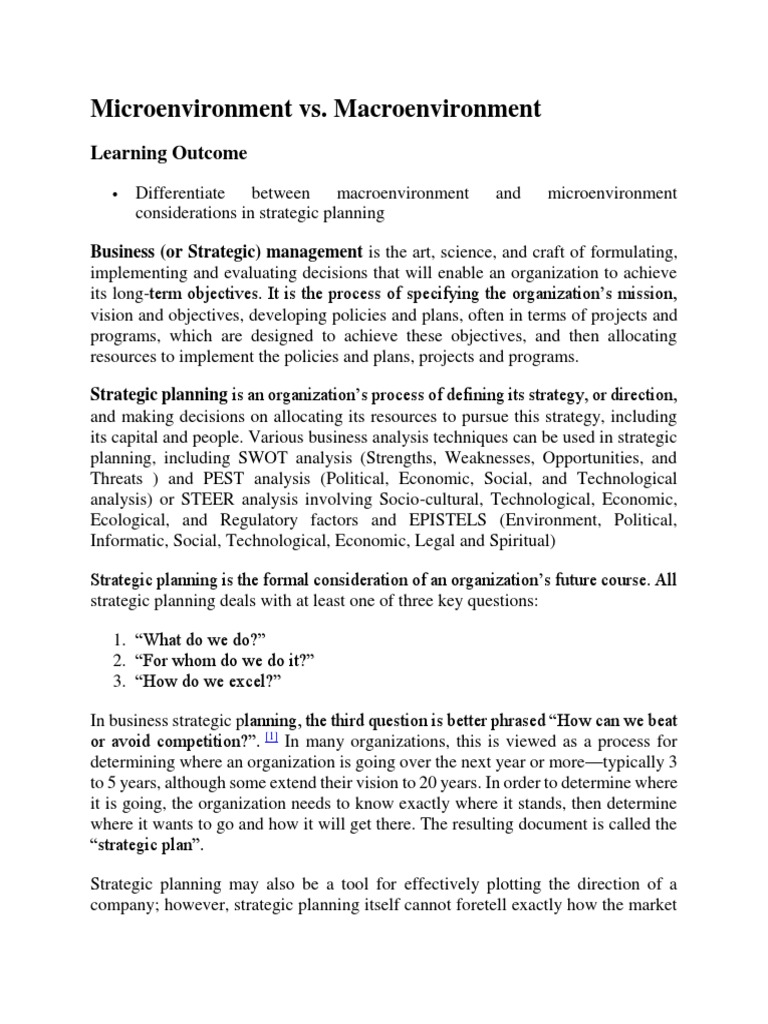 Microenvironment Vs | PDF | Strategic Planning | Swot Analysis