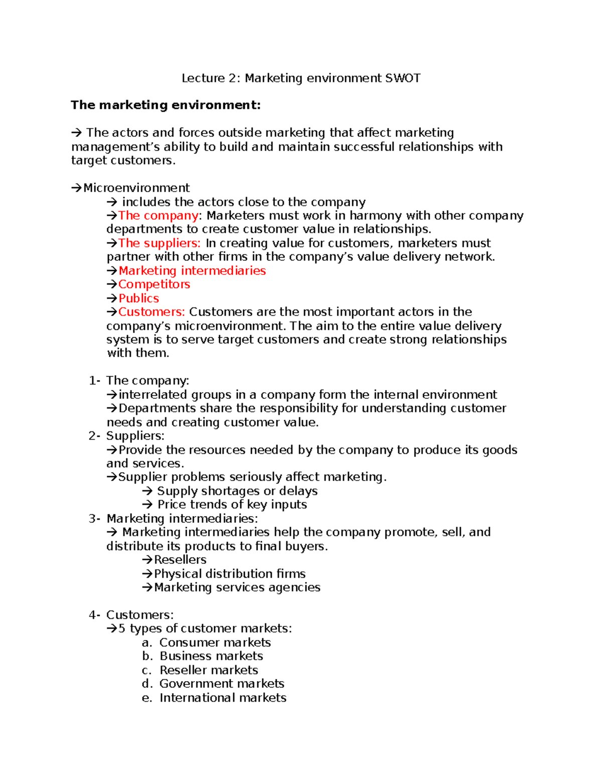 Lecture 2: Marketing environment SWOT - Microenvironment includes the ...