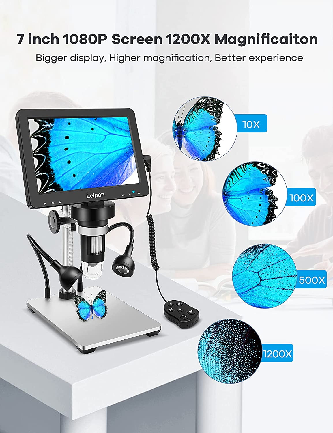 7 Inch LCD Digital Microscope 1200X Magnification with 12MP Camera ...