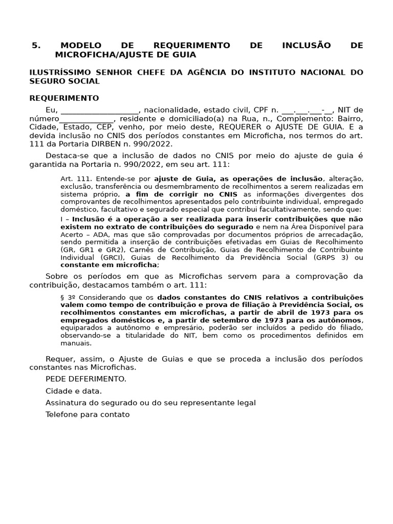 5 Modelo Requerimento Inclusão Microficha Ajuste Guia | PDF