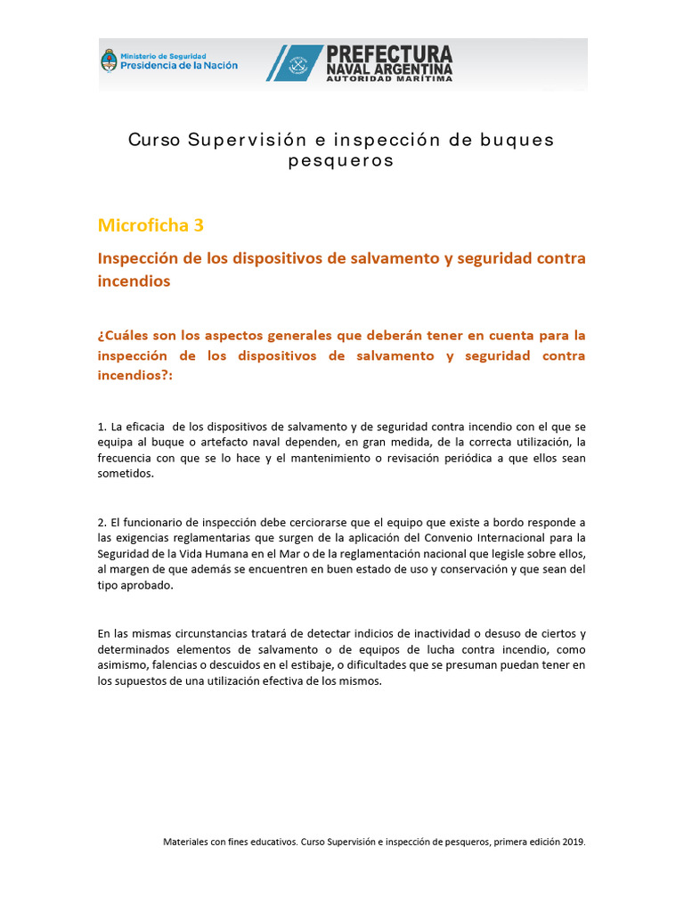 Microficha 3. Inspección de Los Dispositivos de Salvamento y Seguridad ...