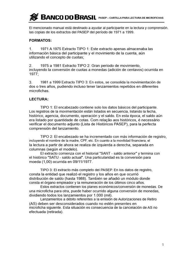 Cartilhade Leiturade Microficha Pasep | PDF | Dinheiro | Business