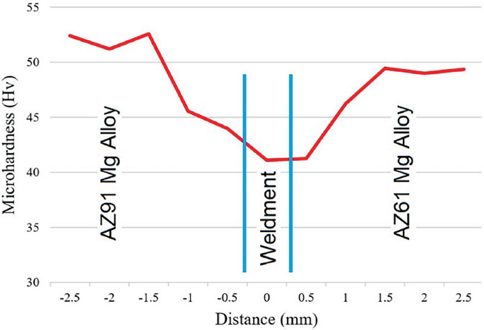 Microhardness graph across the width of welded joints. | Download ...