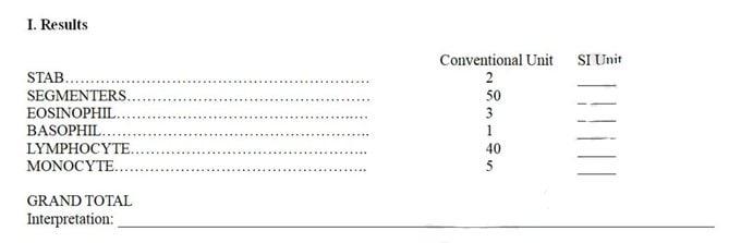 Solved I. Results SI Unit STAB SEGMENTERS EOSINOPHIL. | Chegg.com