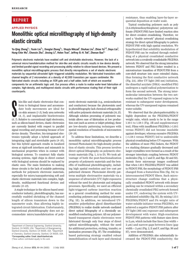 Monolithic optical microlithography of high-density elastic circuits ...