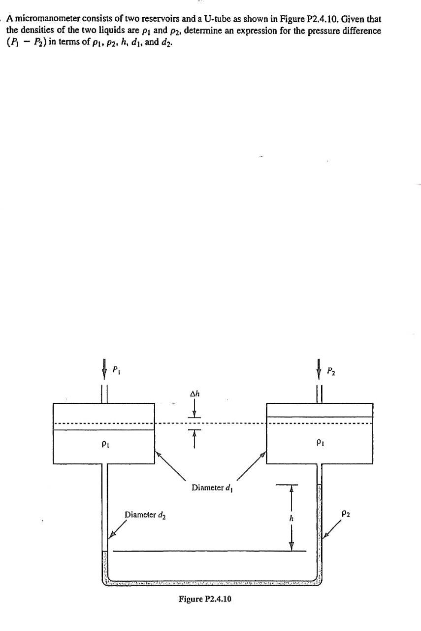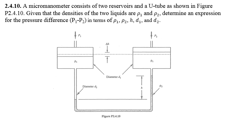 Solved 2.4.10. A micromanometer consists of two reservoirs | Chegg.com