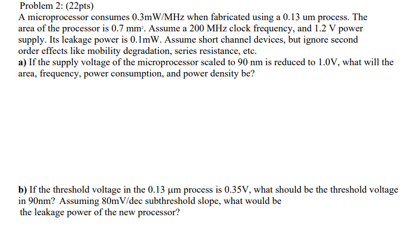 Solved Problem 2: (22pts) A microprocessor consumes 0.3 | Chegg.com