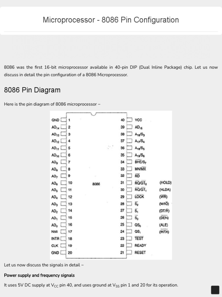 8086 pin diagram ab3a0a204a562cf6575d6f8944ebf048 - Microprocessors ...