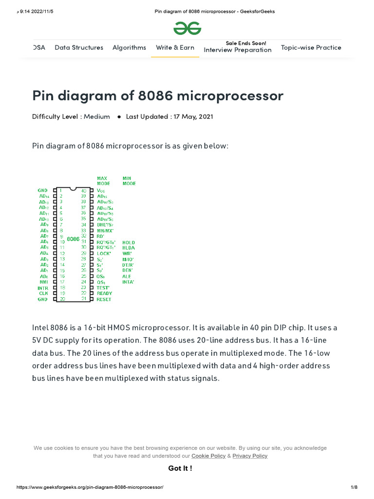 Pin Diagram of 8086 Microprocessor - GeeksforGeeks | PDF | Integrated ...
