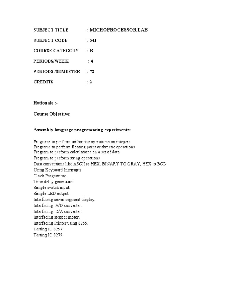 Syllabus-Microprocessor Lab | PDF | Microcomputers | Computer Engineering