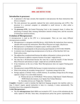 Microprocessor Unit 1 Notes Part 1 | PDF