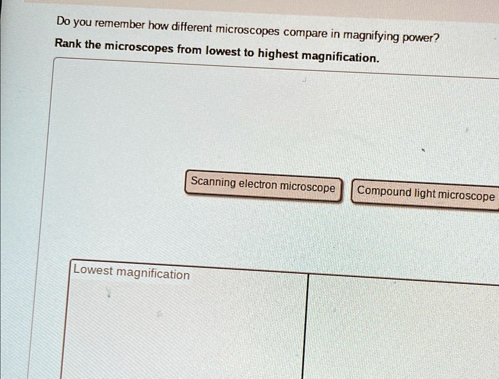 SOLVED: Do you remember how different microscopes compare in magnifying ...