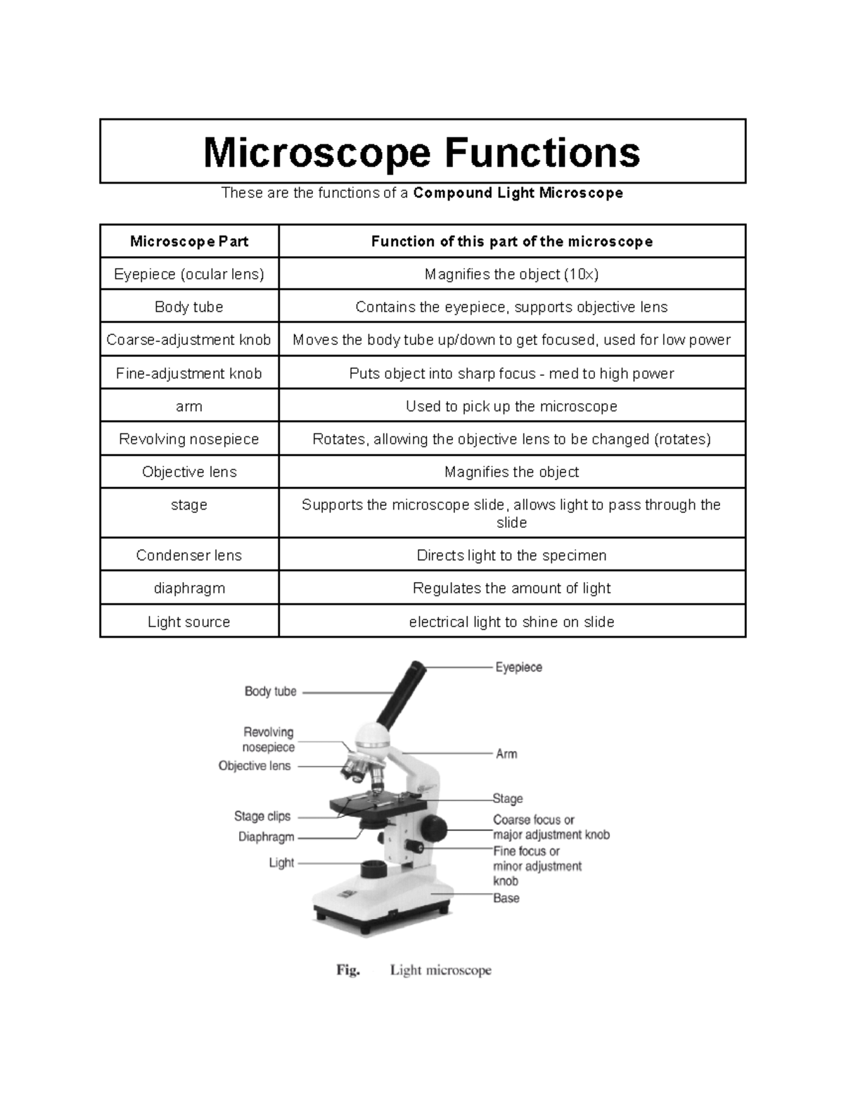 Diagram of Microscope-Functions | Quizlet