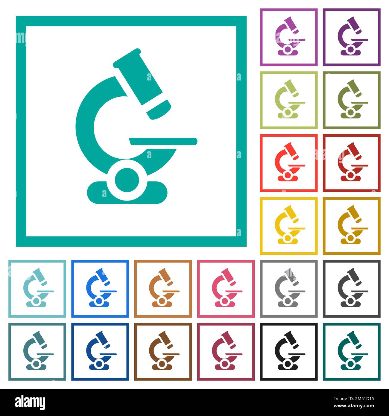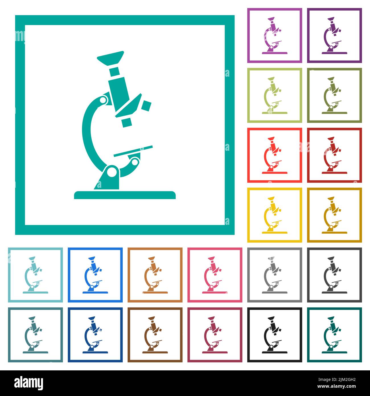 Microscope flat color icons in square frames on white background Stock ...