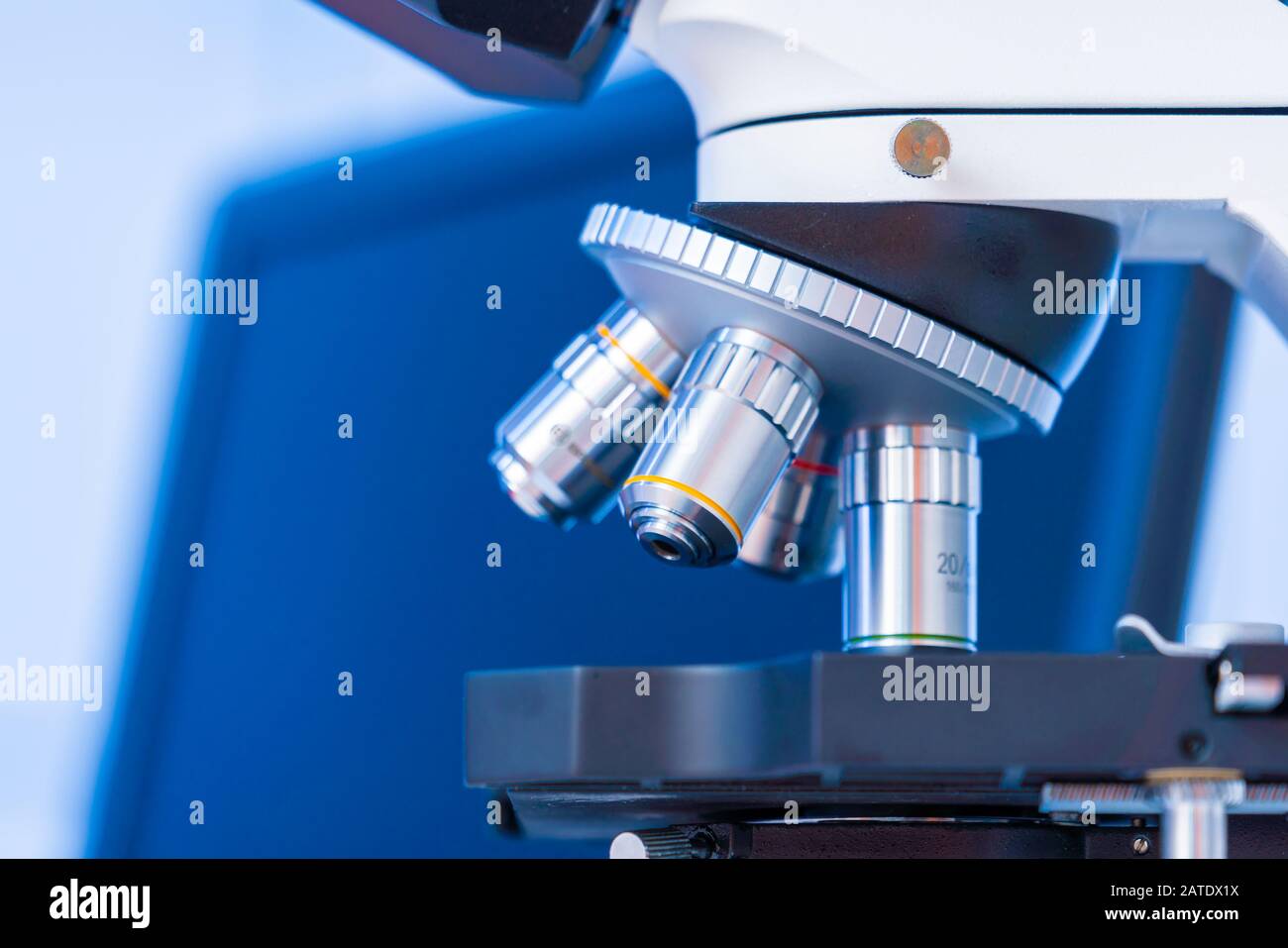 Microscope in a scientific microbiology laboratory of a medical clinic ...