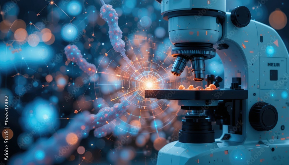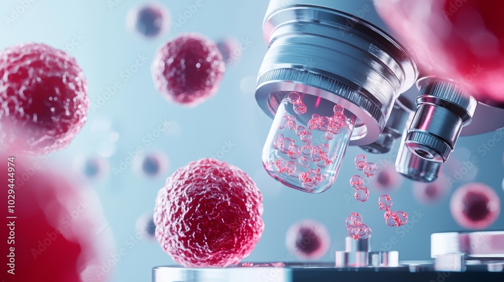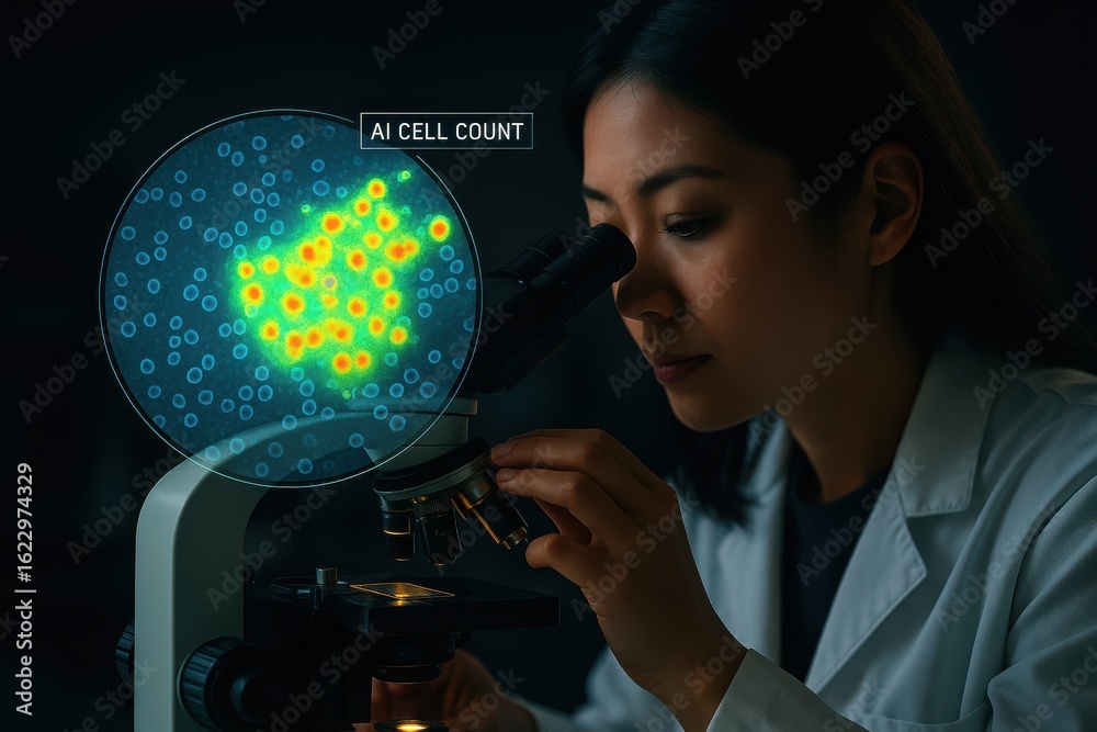 Medical researcher using AI-powered microscope for real-time cell count ...