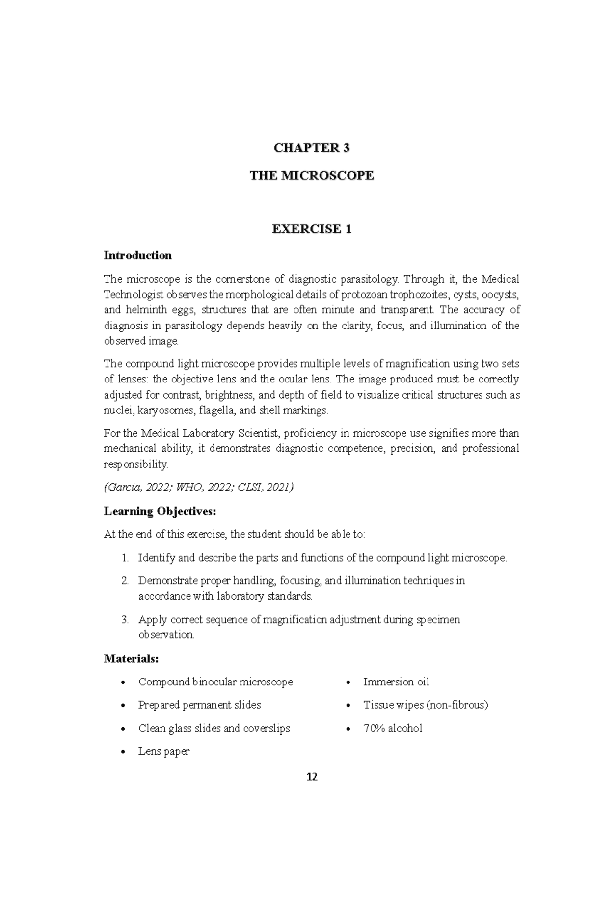 CHAPTER 3 & 4: Microscope Techniques & Specimen Collection (MLS 101 ...